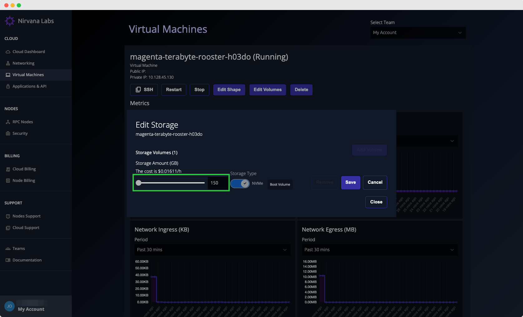 Click on the “Edit” button next to the volume you want to expand and input the new size for the volume or use the slider to adjust the size.