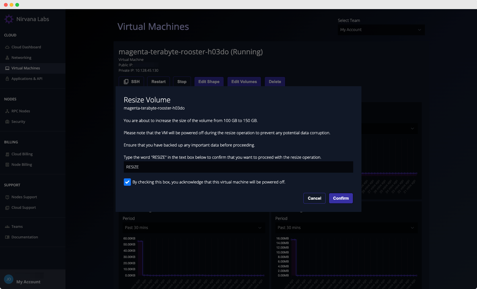 Check the box that ensures that you have read that your VM will be powered off and click “Confirm”.